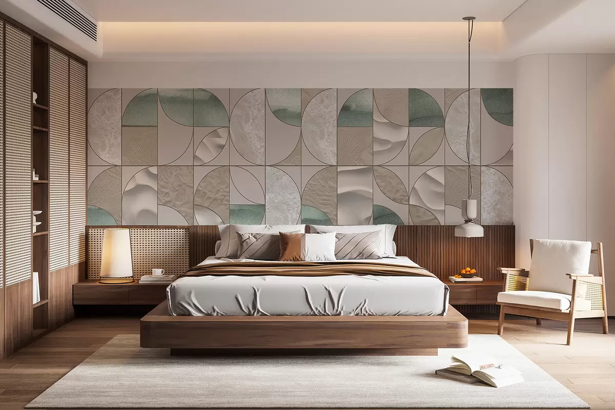 Fotomurales Un patrón geométrico de texturas verdes, beige y blancas dispuestas en un diseño abstracto repetitivo Nr. w07928