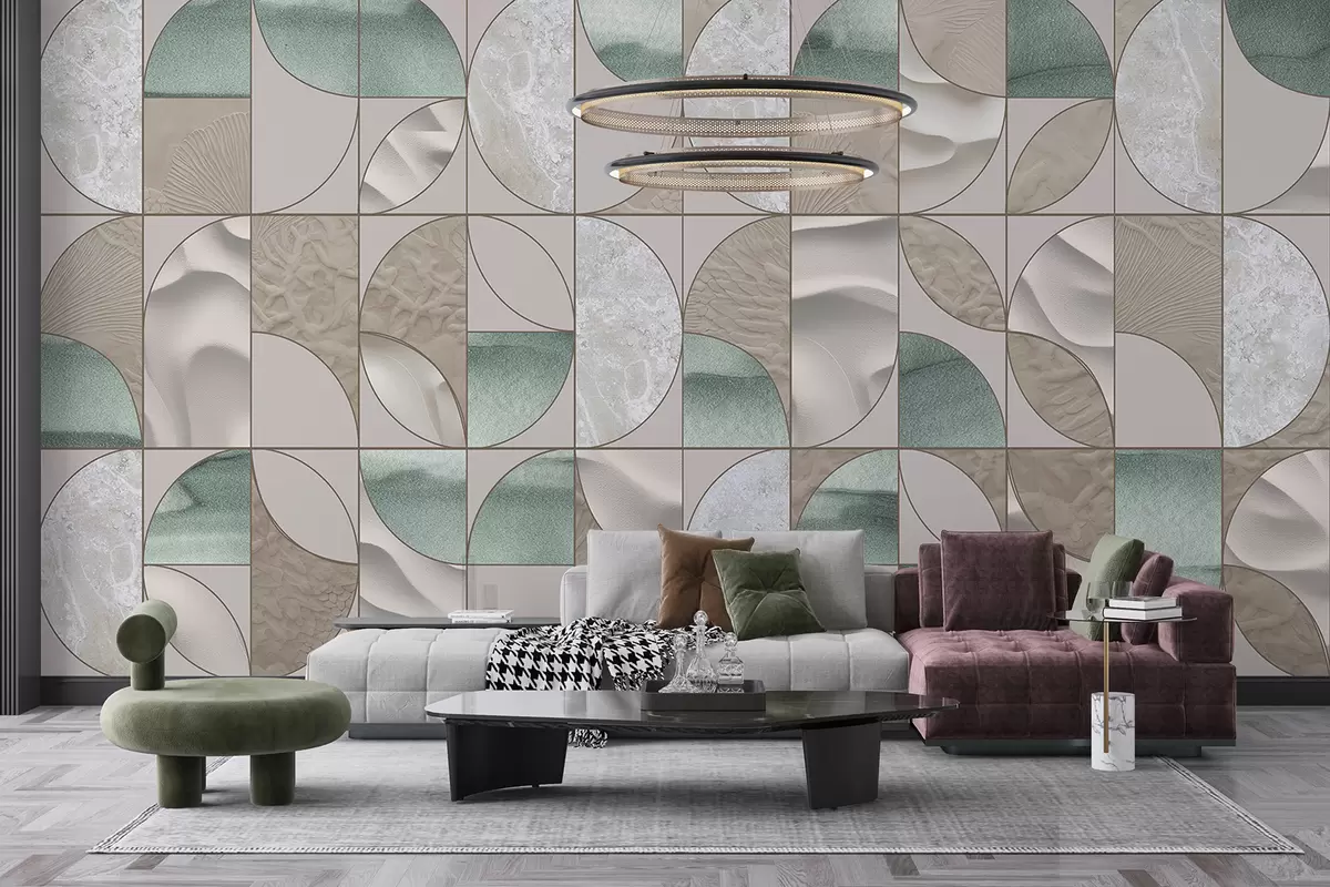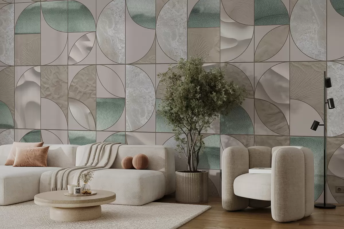 Fotomurales Un patrón geométrico de texturas verdes, beige y blancas dispuestas en un diseño abstracto repetitivo Nr. w07928