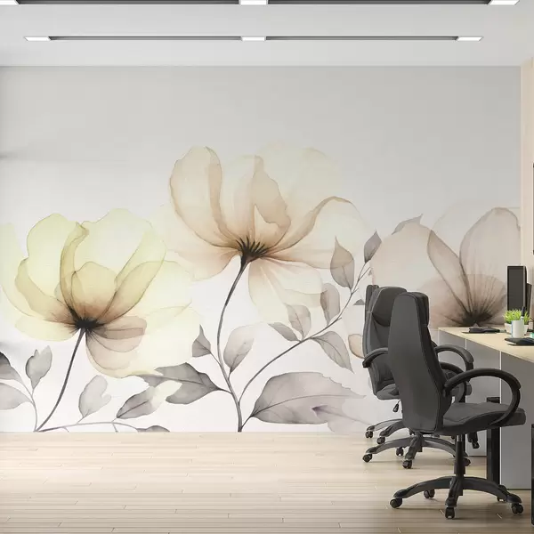 Fotomurales flores grandes de acuarela beige Nr. w07956v2
