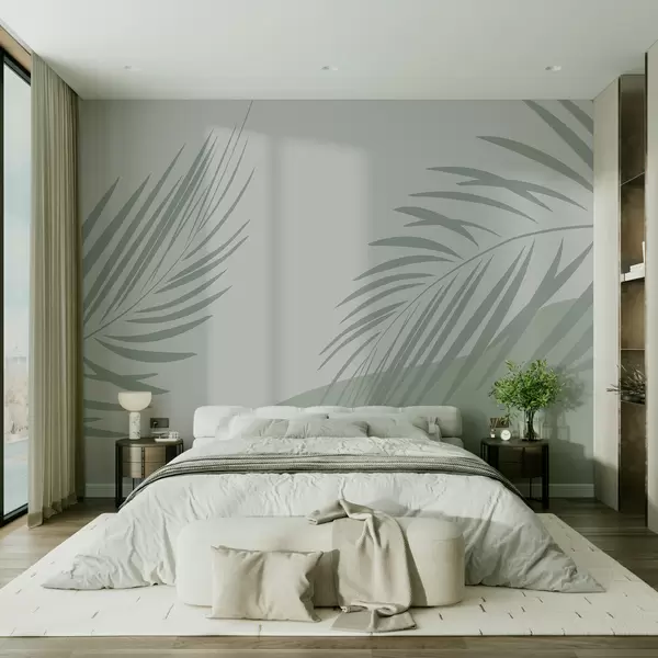 Fotomurales Hojas tropicales sobre un fondo claro. Nr. w08016