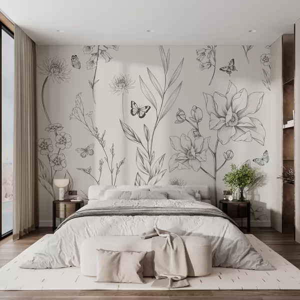 Fotomurales Boho flores y mariposas monocromáticas. Nr. w08088