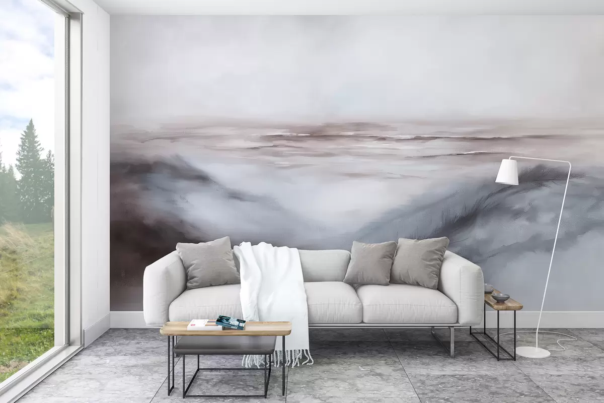 Fotomurales Paisaje abstracto en colores pastel, pinceladas, playa, mar, paleta de colores grises. Nr. w08141