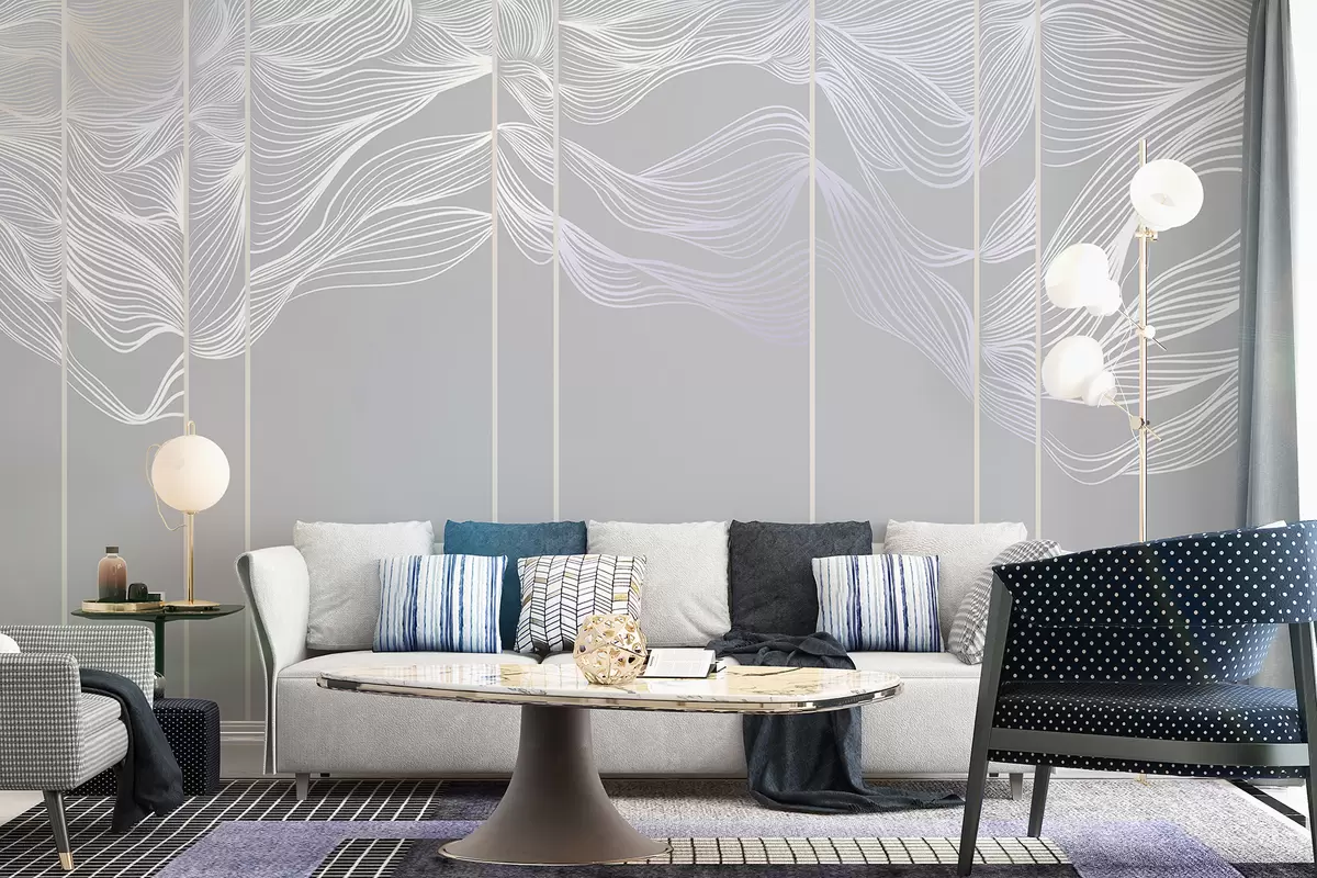 Fotomurales Ondas abstractas de líneas blancas sobre fondo gris claro Nr. w08263v1