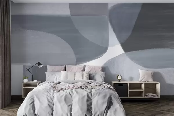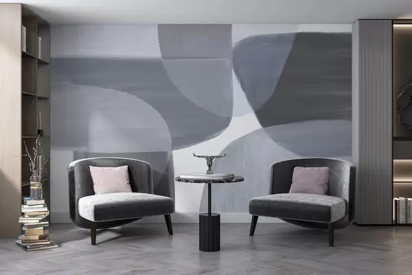 Fotomurales Un estampado abstracto monocromo con formas minimalistas superpuestas en tonos grises y azules Nr. w08410