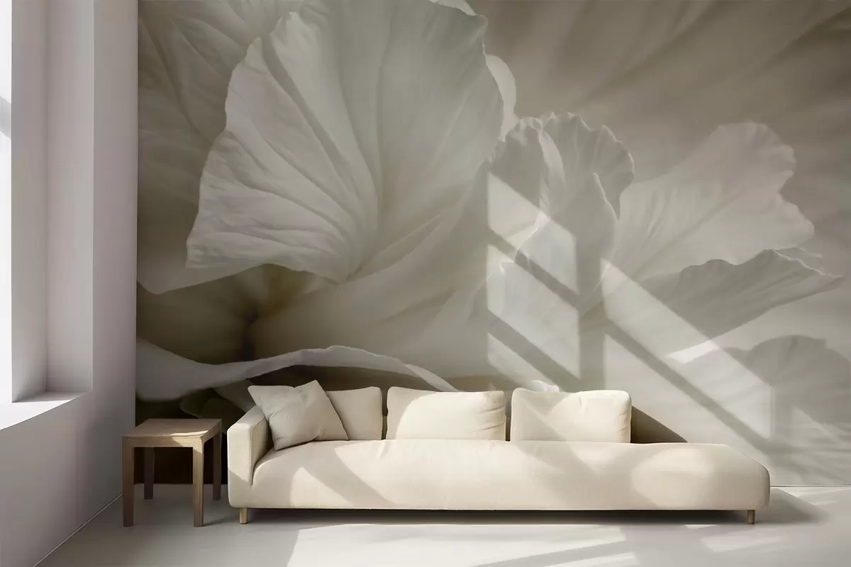 Fotomurales Estampado minimalista abstracto de una delicada flor blanca con pétalos suaves y aterciopelados Nr. w08424