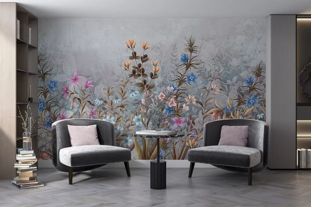 Fotomurales Un exuberante y vibrante estampado de texturas florales con coloridas flores y plantas con intrincados detalles y texturas Nr. w08428