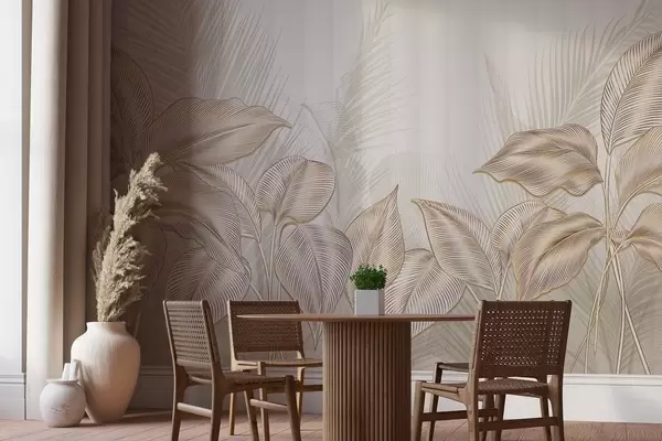 Fotomurales Elegantes hojas de palmera blancas y beige sobre un fondo claro y texturizado Nr. w08434