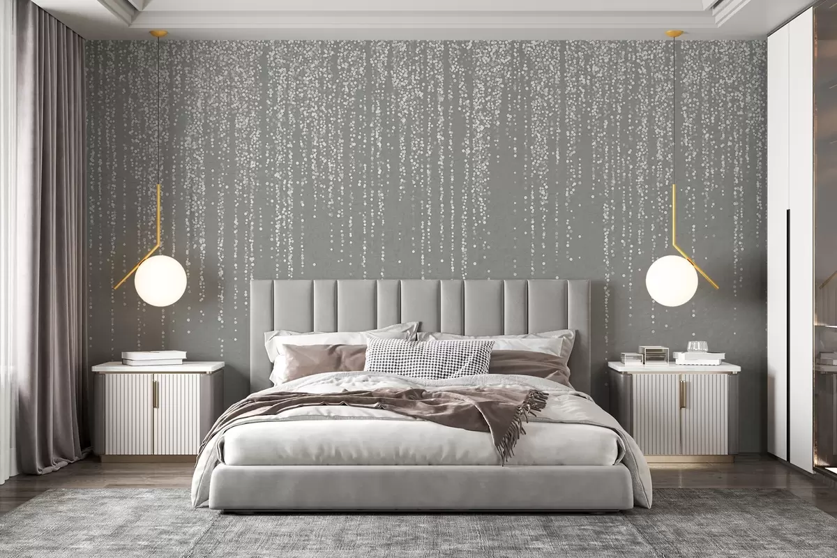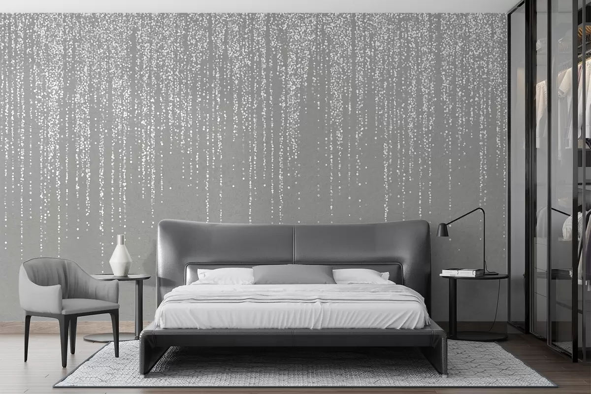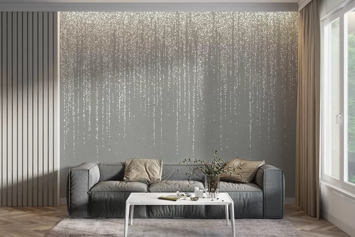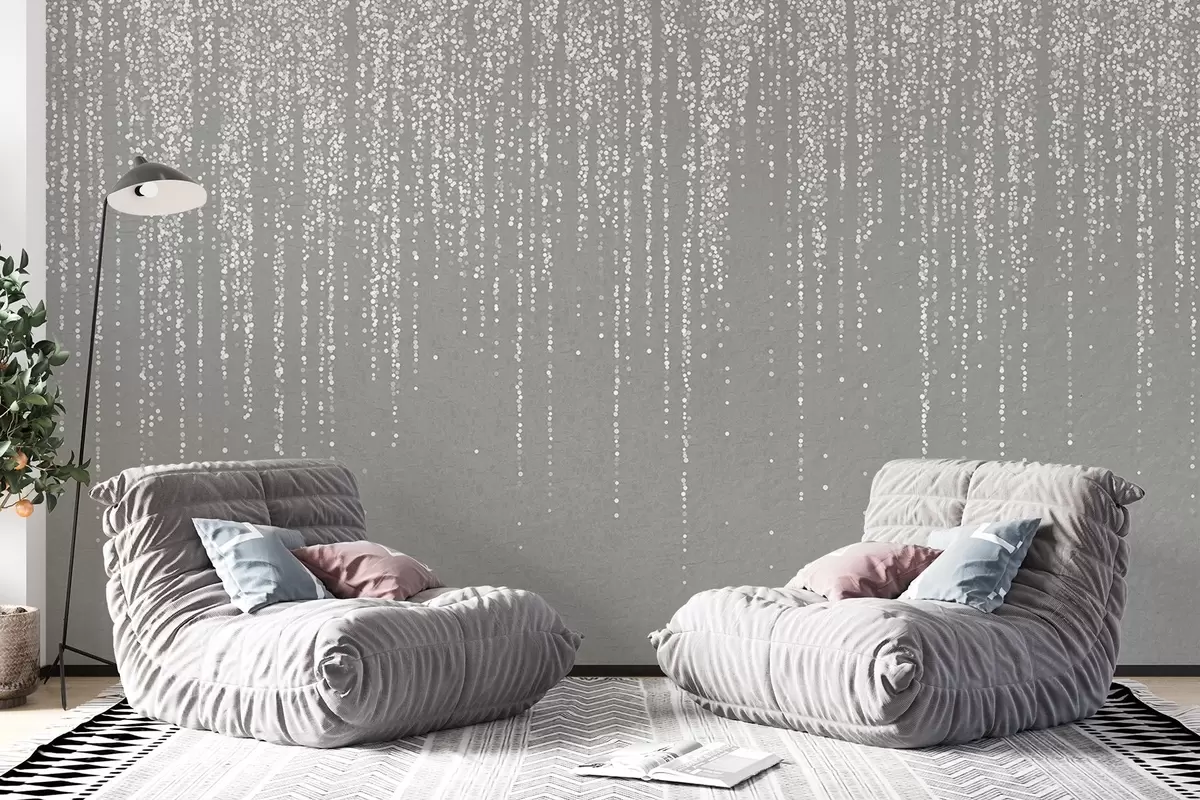Fotomurales Un elegante estampado vertical de guirnaldas punteadas sobre un fondo gris texturizado, que crea una sensación de profundidad y movimiento Nr. w08470v1