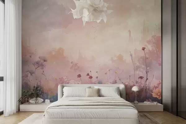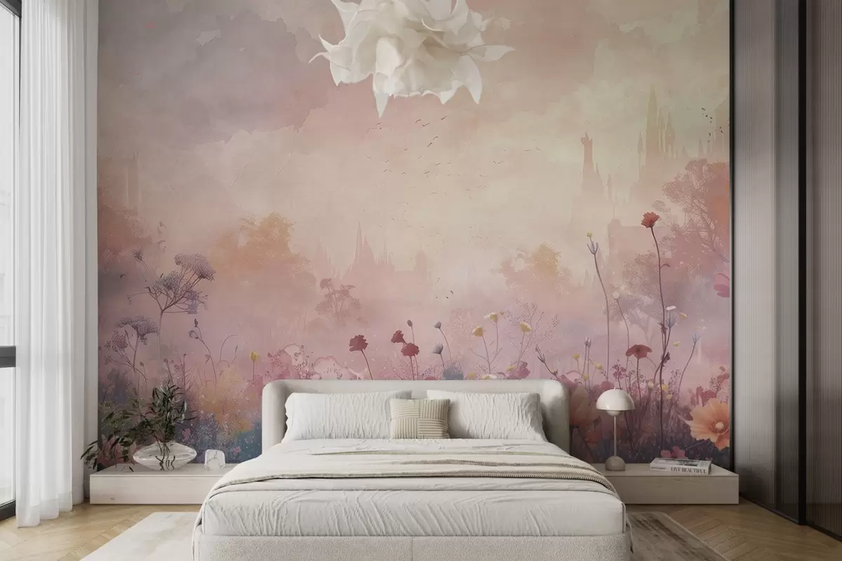 Fotomurales Flores silvestres sobre fondo de silueta de castillo Nr. w08478