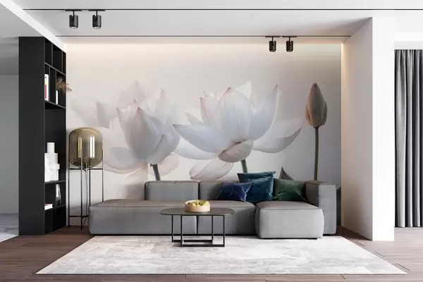 Fotomurales Suaves flores de loto con pétalos y hojas Nr. w08488
