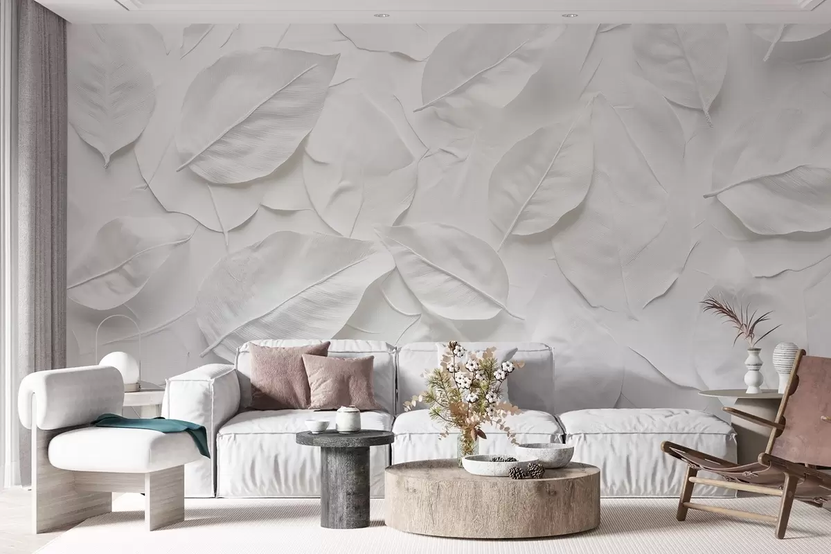 Fotomurales Abstracción floral blanca de hojas Nr. w08494