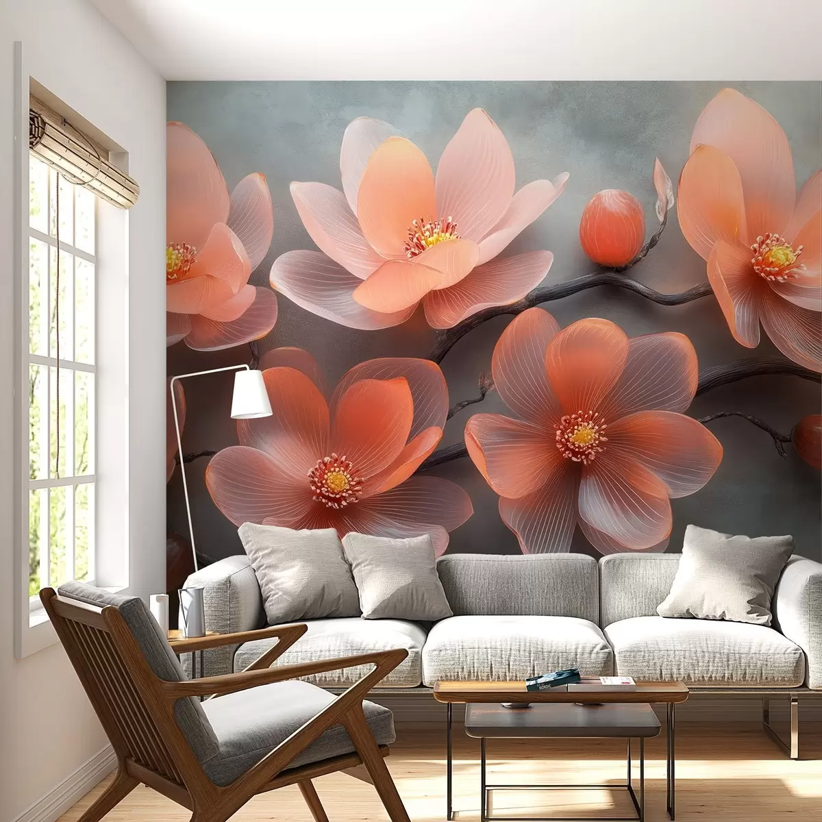 Fotomurales Un ramo de flores de magnolia de cristal translúcido sobre un fondo de hormigón gris Nr. w08497