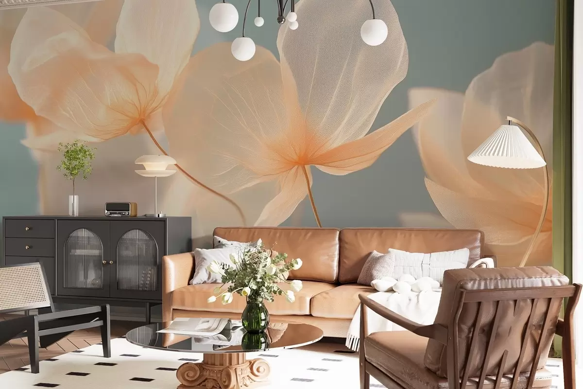 Fotomurales Pétalos de loto, una delicada composición con fondo azul Nr. w08500