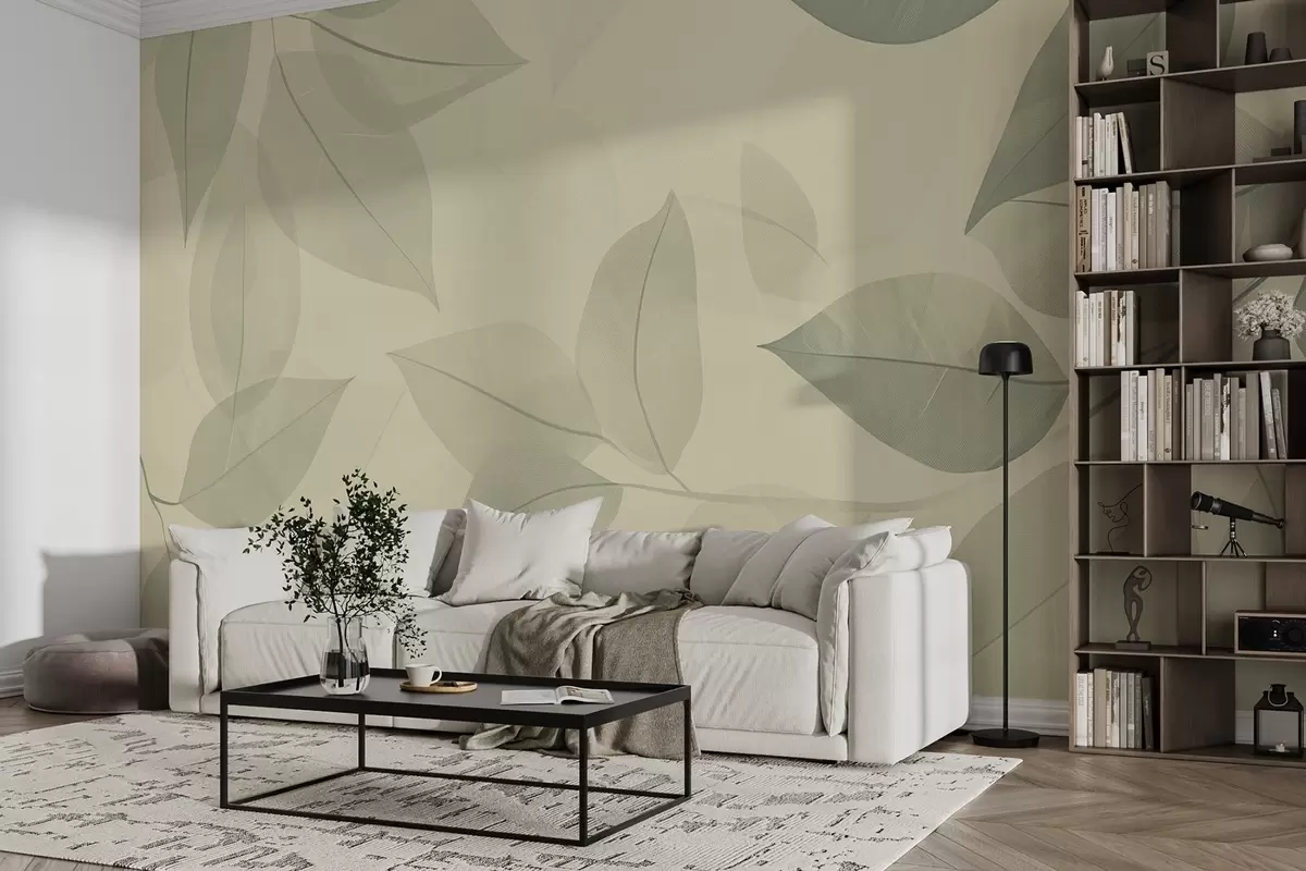 Fotomurales Ramas de hojas verdes sobre fondo beige suave Nr. w08502v2