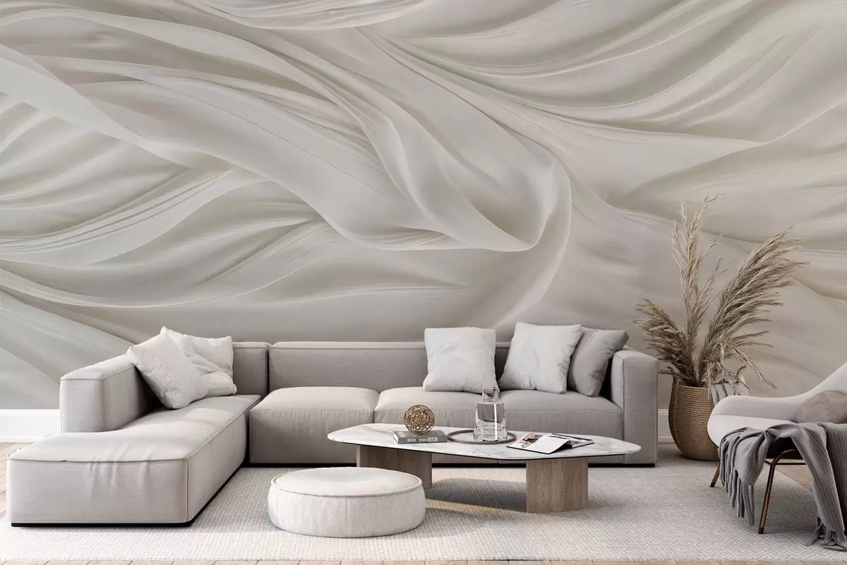 Fotomurales Estampado moderno con imitación de tela blanca lisa y fluida con pliegues suaves y ondulantes Nr. w08537
