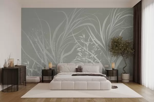 Fotomurales Delicado y moderno estampado floral minimalista en blanco sobre fondo verde pastel claro Nr. w08583v1