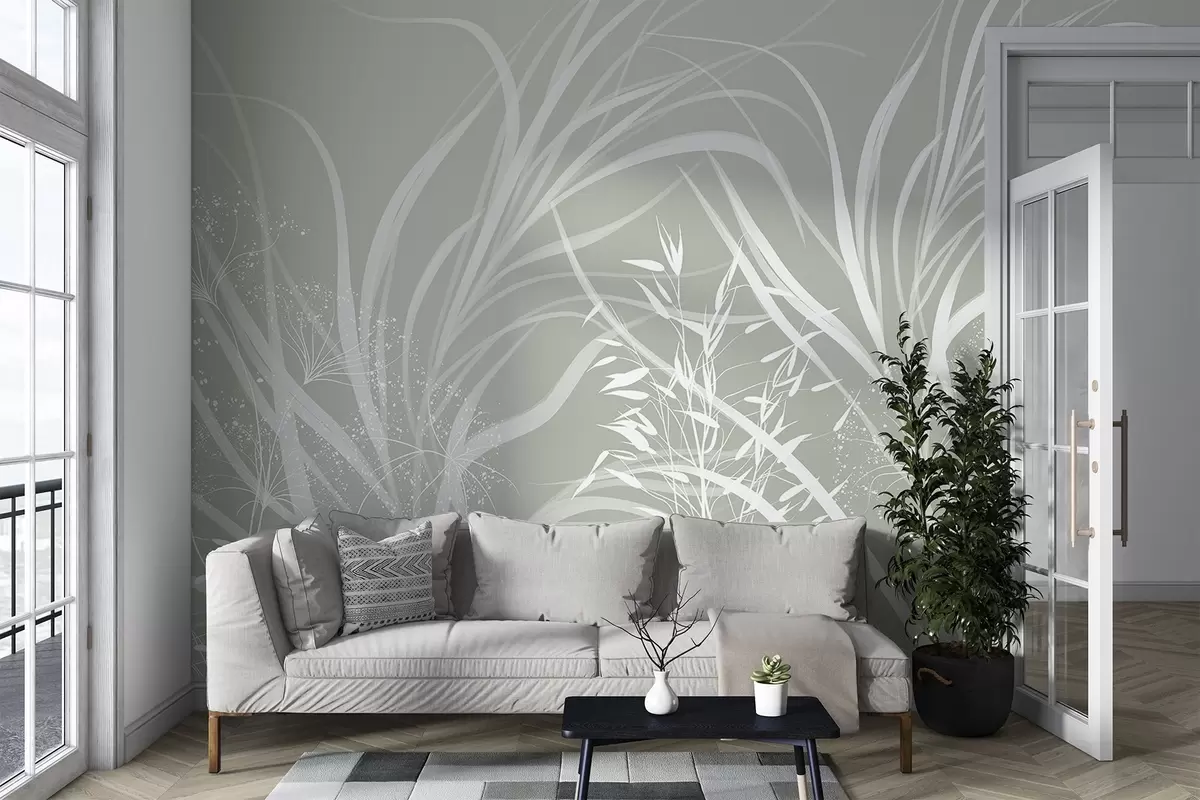 Fotomurales Delicado y moderno estampado floral minimalista en blanco sobre fondo verde pastel claro Nr. w08583v1