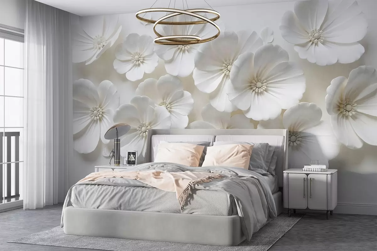 Fotomurales Flores blancas con delicados pétalos y centros sobre fondo claro Nr. w08587