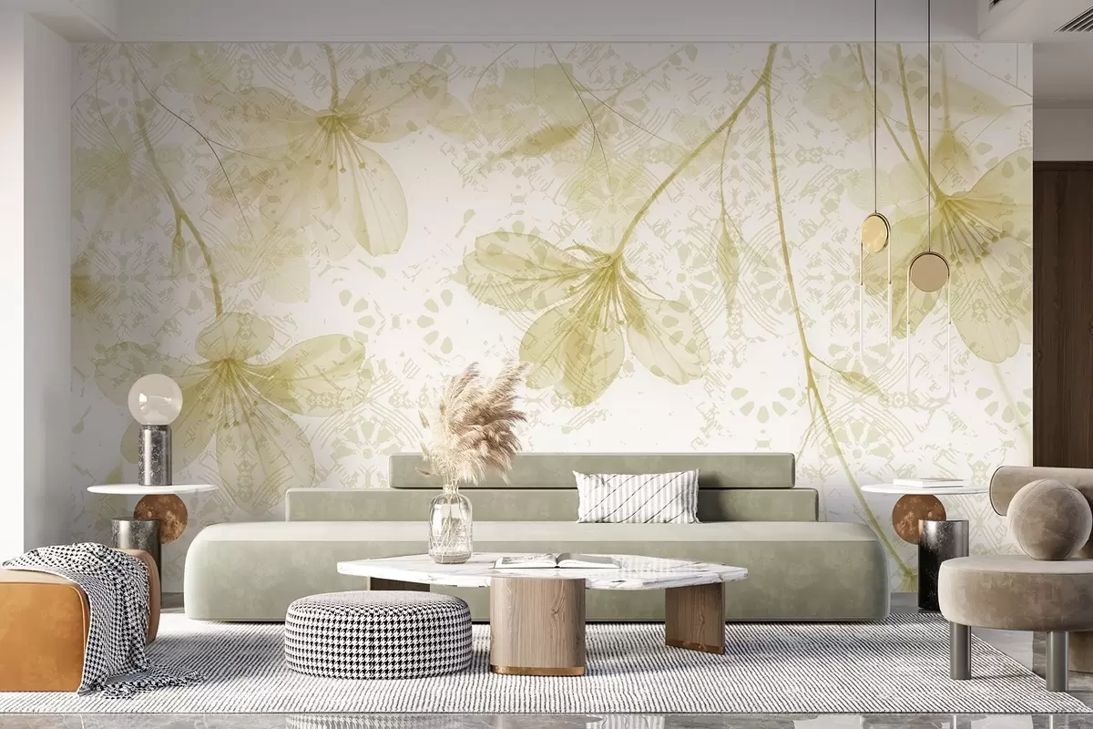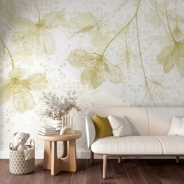 Fotomurales Delicadas flores amarillas y blancas con largos tallos y pétalos sobre un fondo de textura suave y difuminada Nr. w08588v2