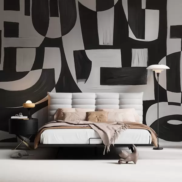 Fotomurales Formas y motivos geométricos abstractos en blanco y negro que crean una composición visualmente impactante y dinámica Nr. w08608