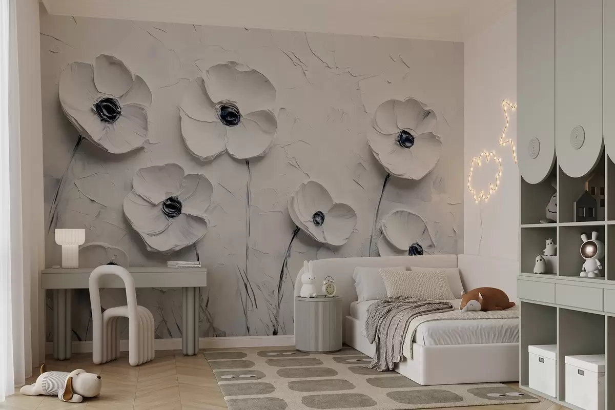 Fotomurales Elegantes flores grises con imitación de pinceladas Nr. w08632