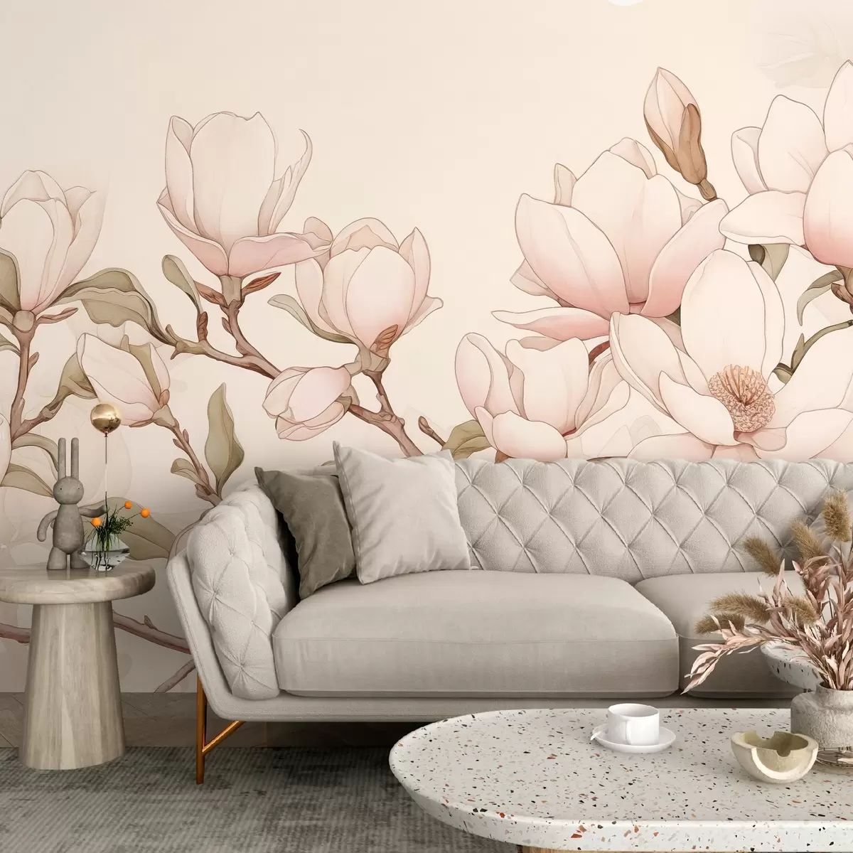 Fotomurales Ramas de magnolia con delicadas flores rosas sobre un fondo claro, creando un ambiente sofisticado y tranquilo Nr. w08688