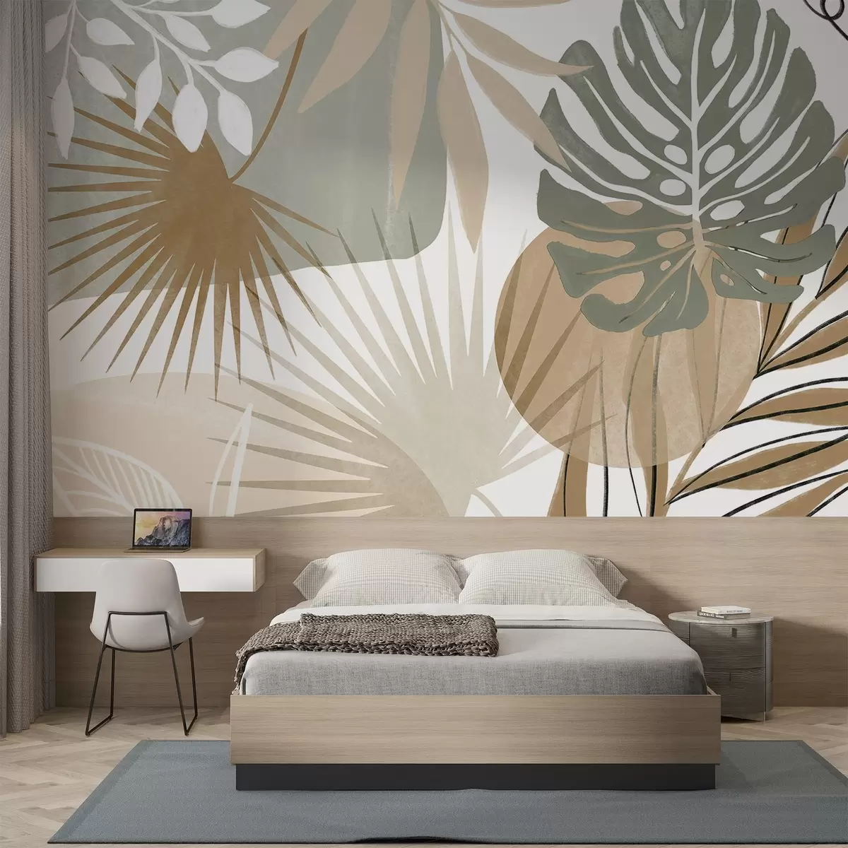 Fotomurales Diseño abstracto con varias hojas tropicales en tonos tierra, verde, beige y crema Nr. w08738v1