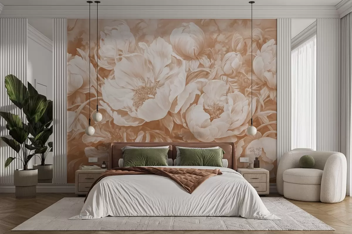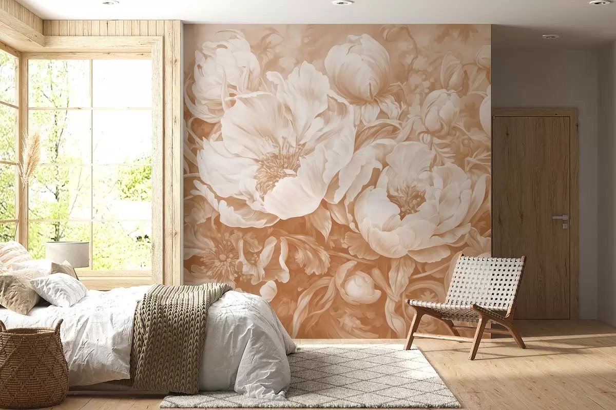 Fotomurales Tulipanes y peonías, una composición floral en estilo pincelada de óleo beige Nr. w08817v1