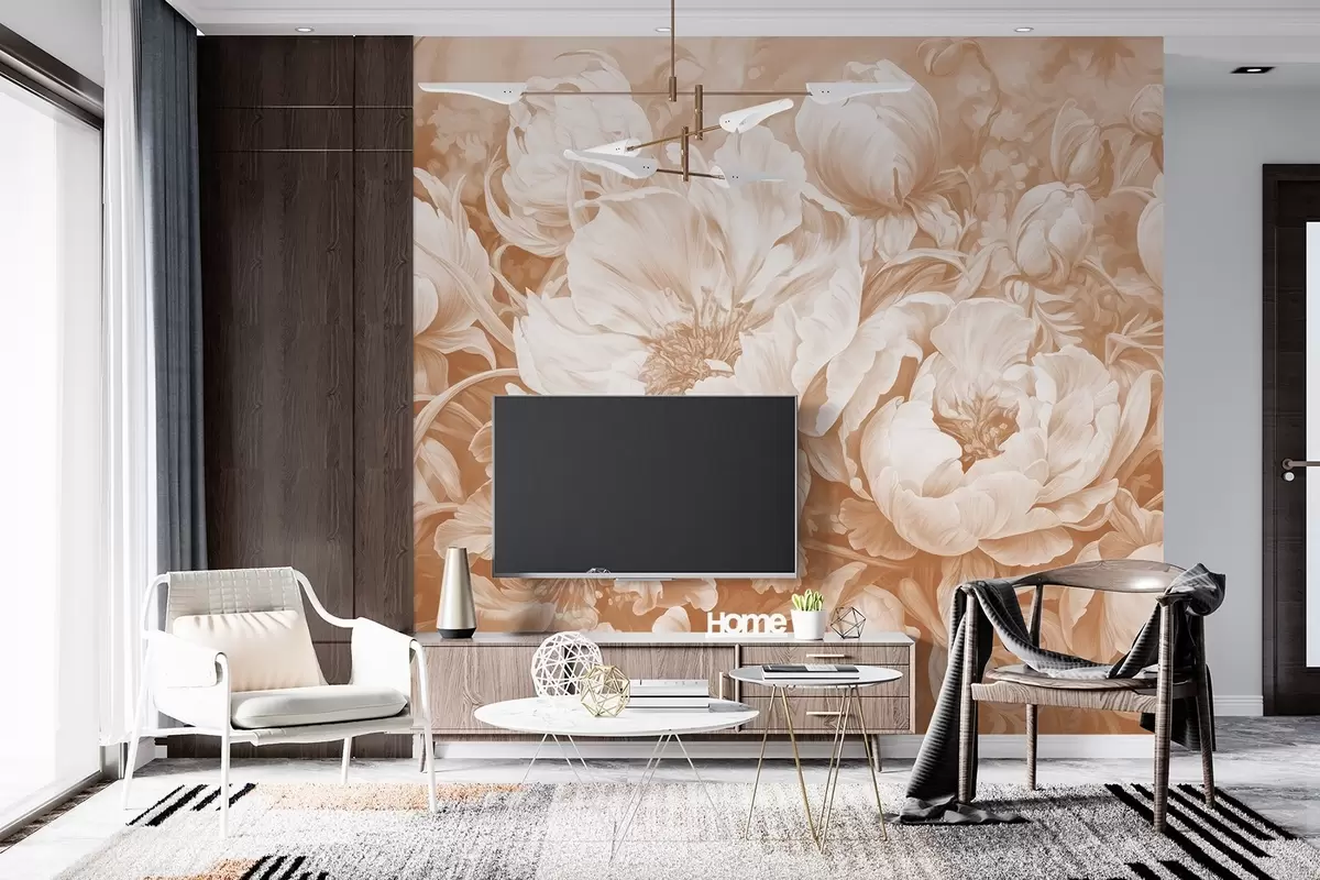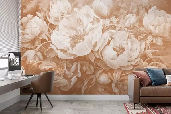 Fotomurales Tulipanes y peonías, una composición floral en estilo pincelada de óleo beige Nr. w08817v1