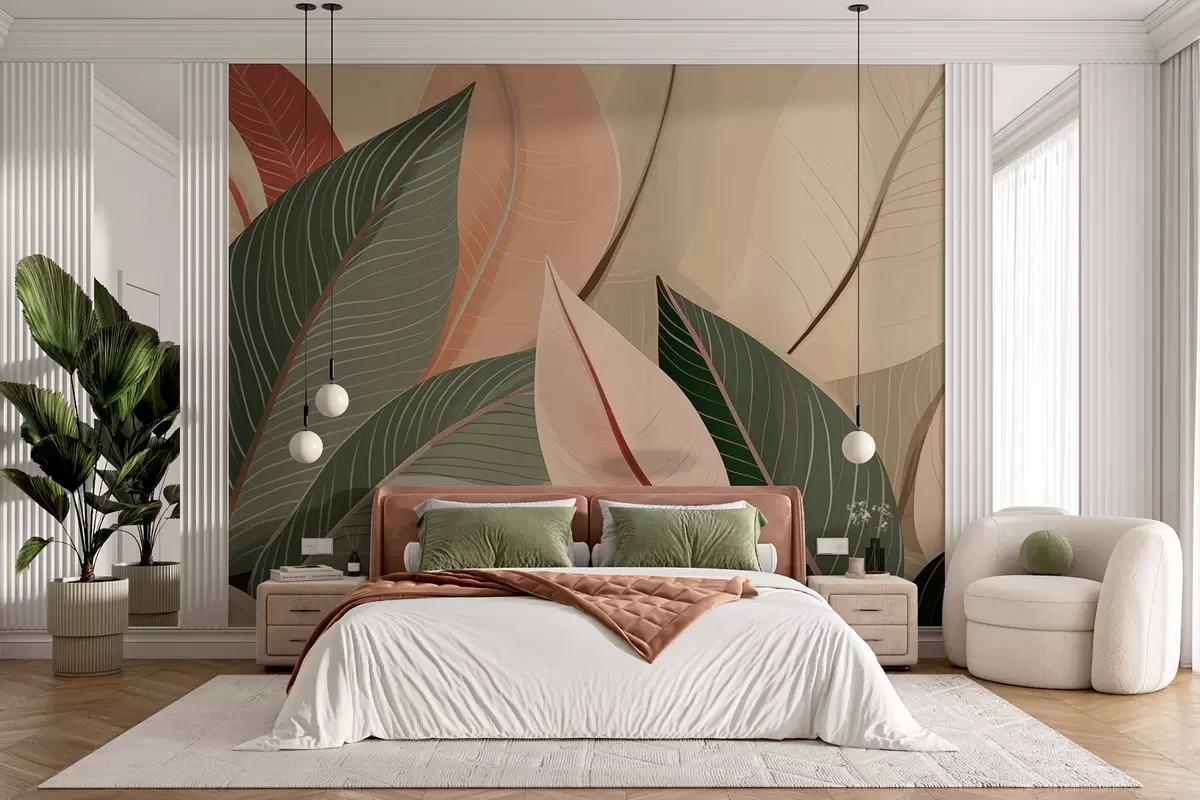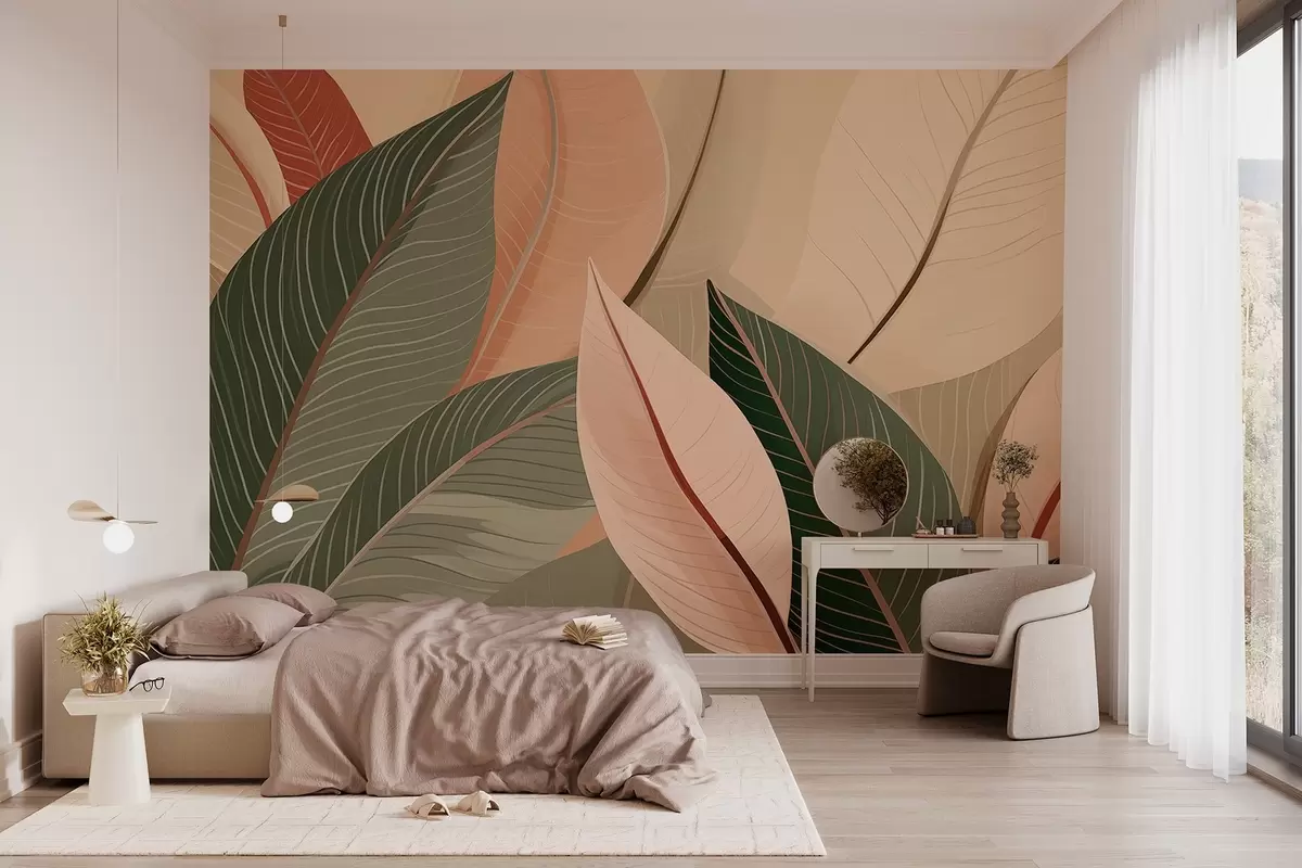 Fotomurales Primer plano de hojas en colores verde oliva y rosa-crema Nr. w08944
