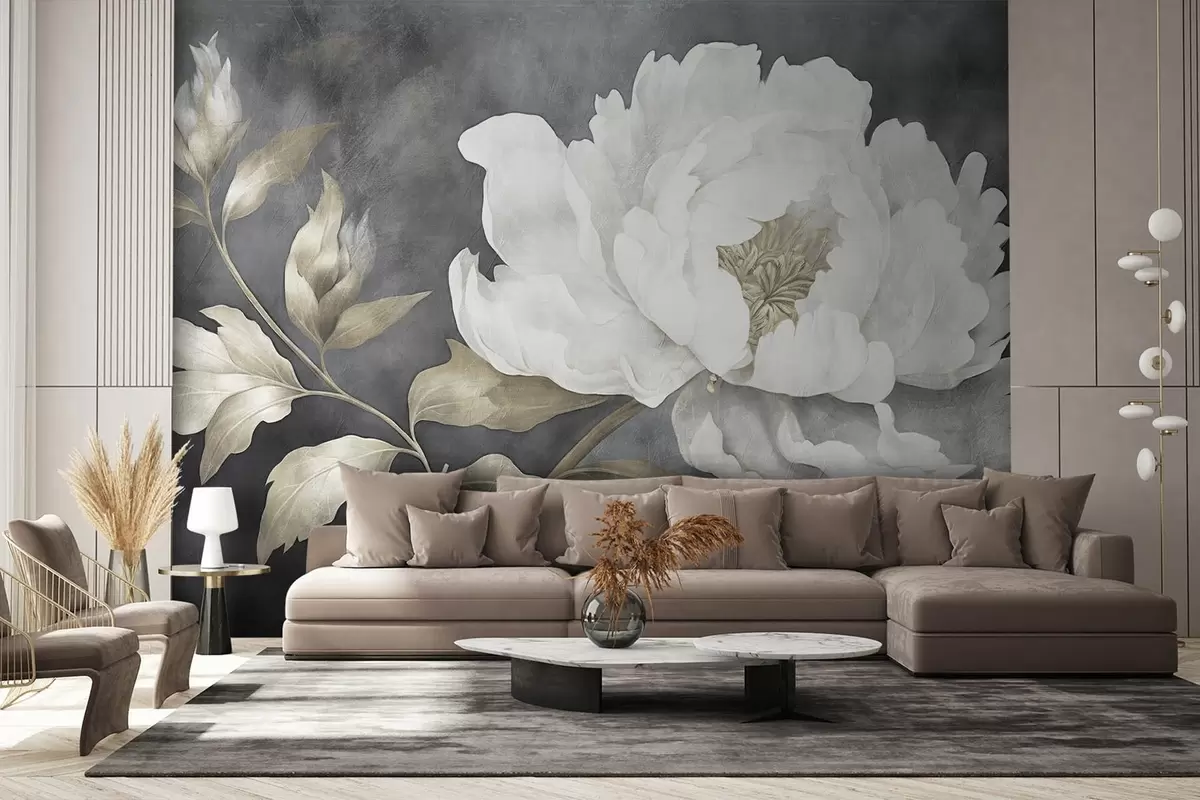 Fotomurales Gran flor clara sobre fondo oscuro envejecido Nr. w08949