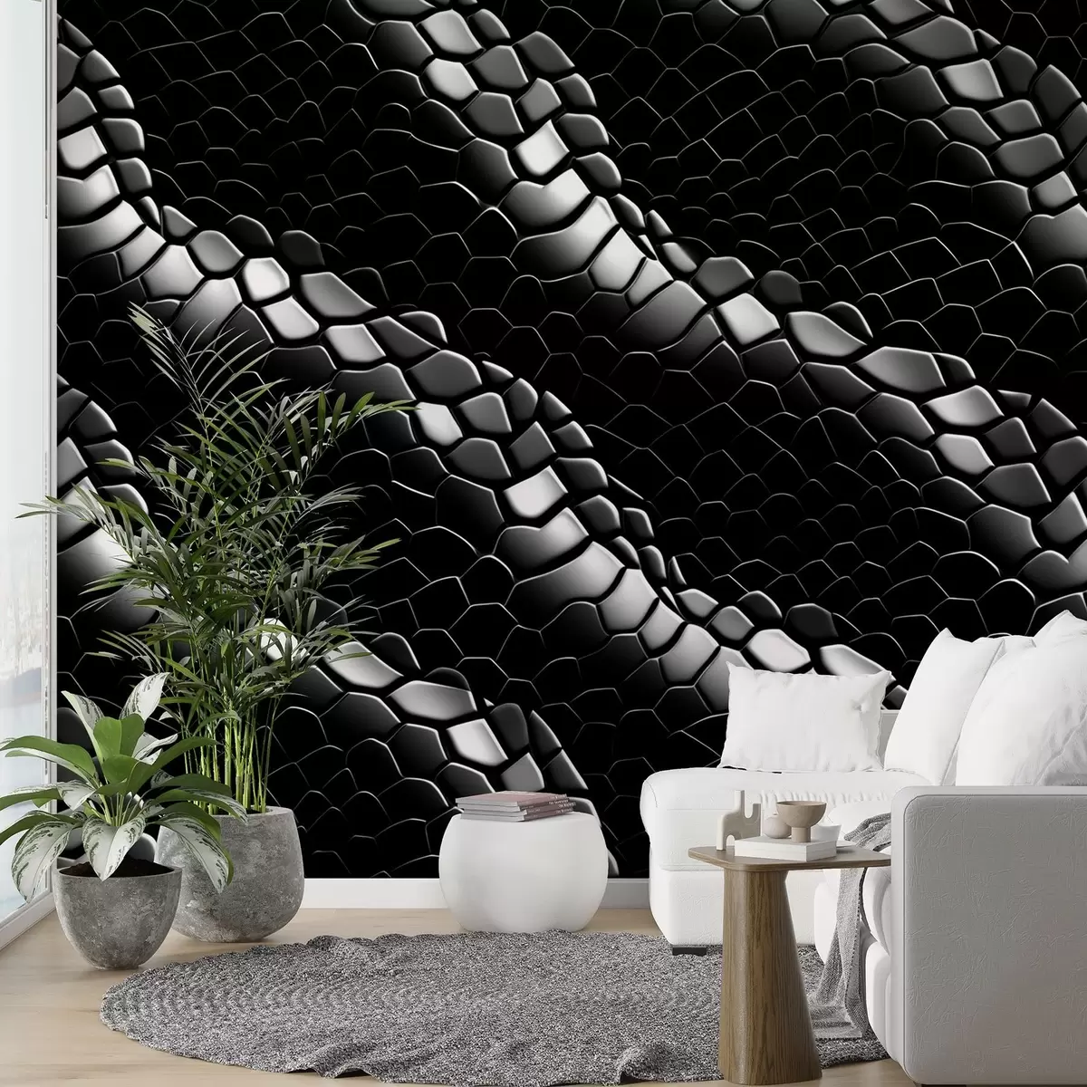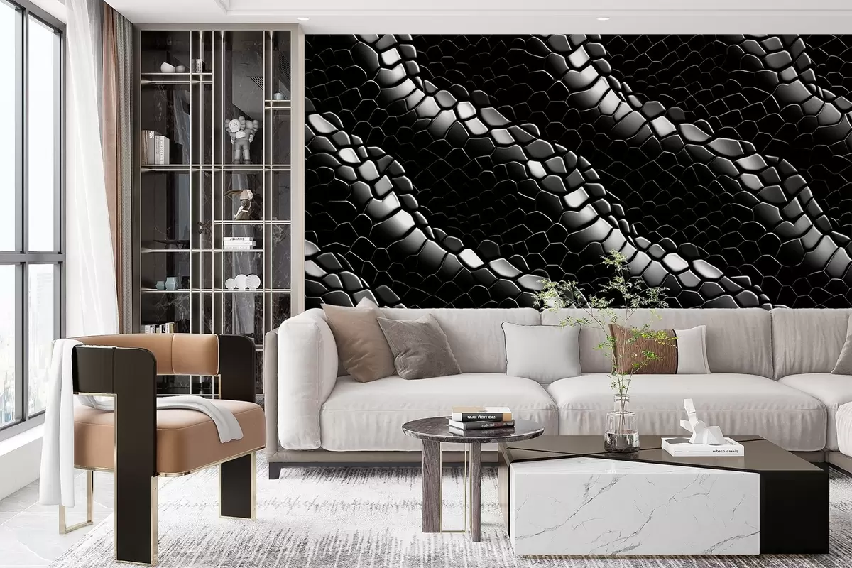 Fotomurales Ondas blancas y negras en la textura de la piel de serpiente Nr. w08995