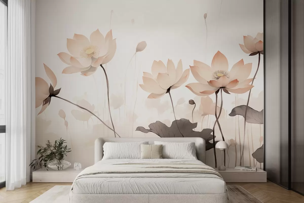 Fotomurales Nenúfares en delicados tonos claros en estilo acuarela Nr. w09035