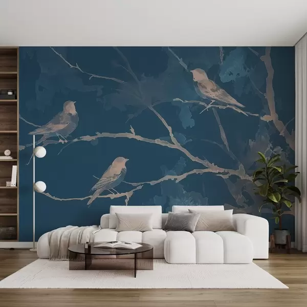 Fotomurales Pájaros en las ramas de los árboles en estilo acuarela Nr. w09064v1