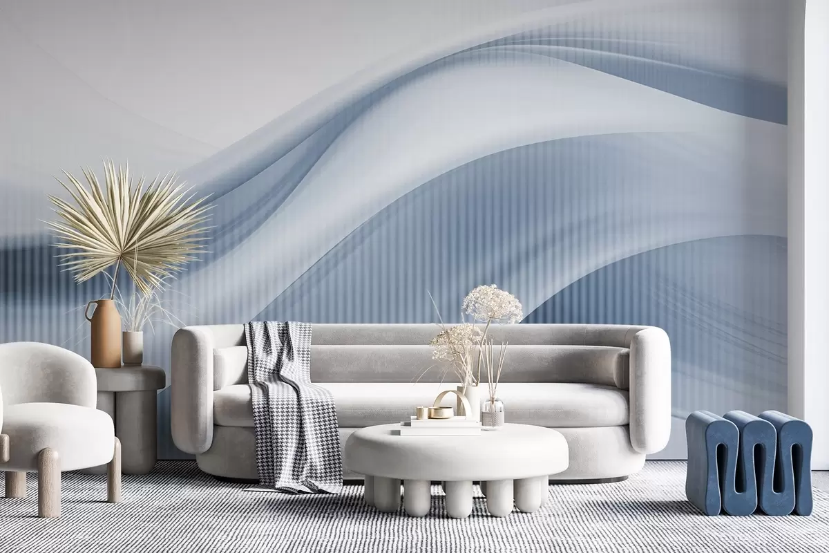 Fotomurales Estampado abstracto con líneas fluidas y sutiles rayas verticales, que crean una sensación de movimiento y profundidad, paleta azul Nr. w09189v1