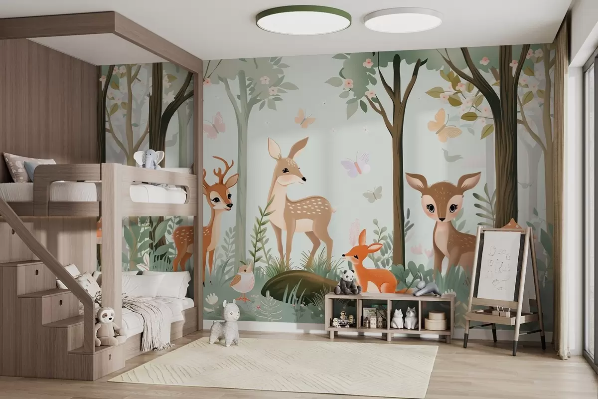 Fotomurales Caprichosos animales del bosque en tonos verdes Nr. w09227