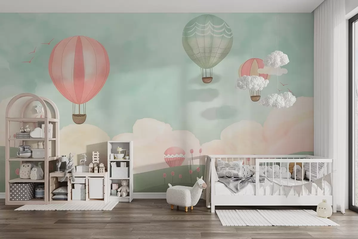 Fotomurales Globos aerostáticos sobre colinas con nubes Nr. w09228