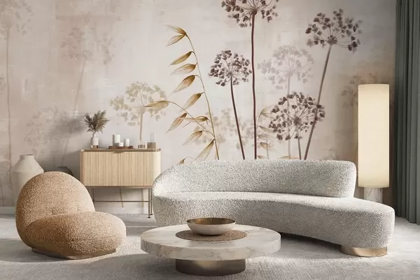 Fotomurales Dibujo de flores secas con tallos largos, paleta monocroma, sobre fondo beige claro texturado, ilustración botánica Nr. w09314v1