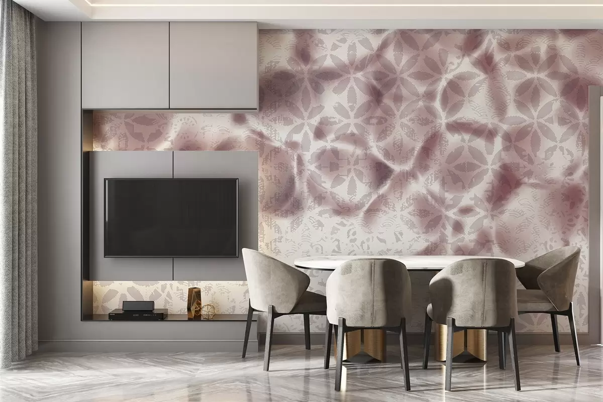 Fotomurales Arte abstracto texturizado con estampado floral bordo, efecto difuminado y borroso, que crea una atmósfera suave y soñadora Nr. w09322v1