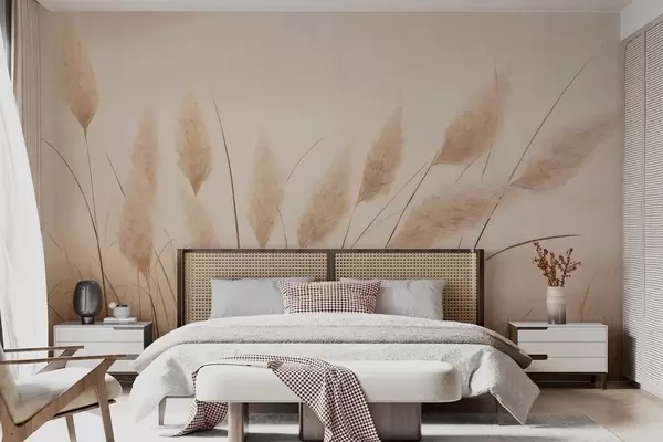 Fotomurales Hierba pampa de color beige suave en el campo Nr. w09324
