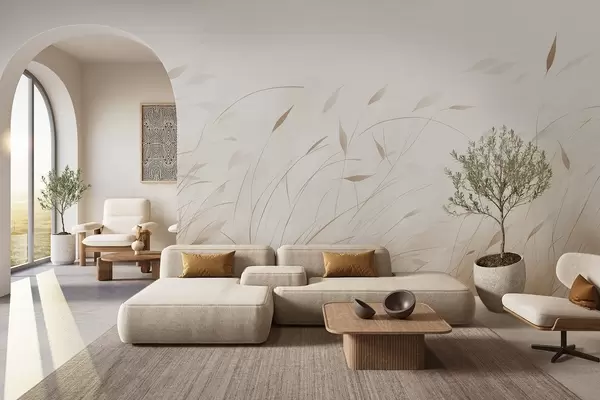 Fotomurales Hierba al viento en estilo acuarela en tonos beige Nr. w09331v1