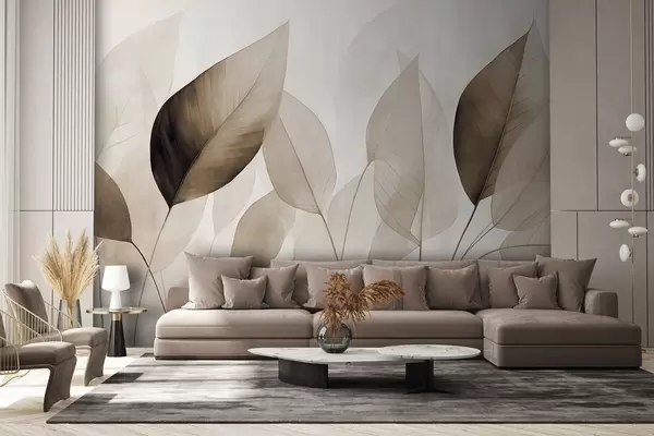 Fotomurales Pintura texturizada imitación de hojas en tonos marrones y beige con delicadas venas y tallos Nr. w09400v1