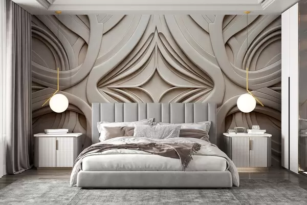Fotomurales Estampado geométrico abstracto simétrico con textura, color beige claro, estilo art déco, detalles intrincados Nr. w09473