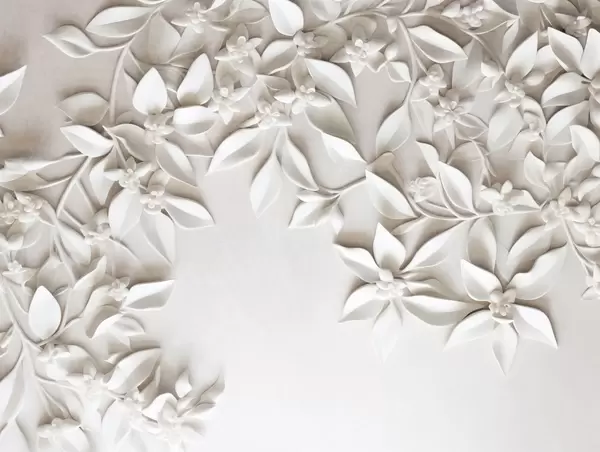Fotomurales Flores y hojas blancas con textura, arreglo floral, diseño elegante, estilo minimalista, arte decorativo Nr. w09479