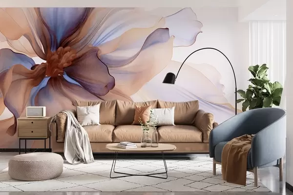 Fotomurales Flor grande con textura detallada, con pétalos blancos, azules y marrones, sobre fondo blanco. Nr. w09498