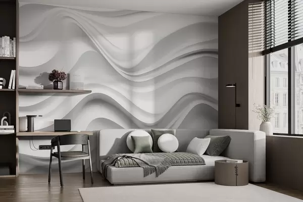 Fotomurales Composición abstracta en blanco y negro en 3D con ondas suaves Nr. w09506