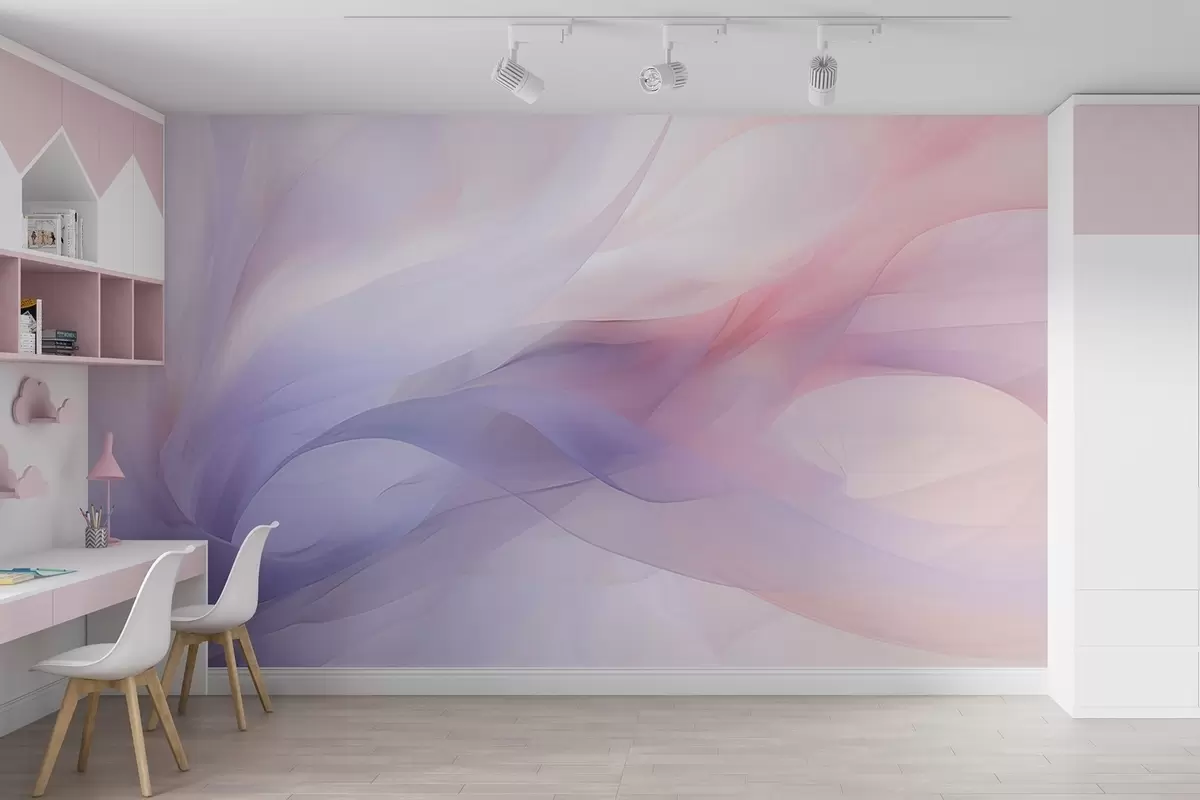 Fotomurales Suaves ondas abstractas en tonos azules y rosas. Nr. w09508