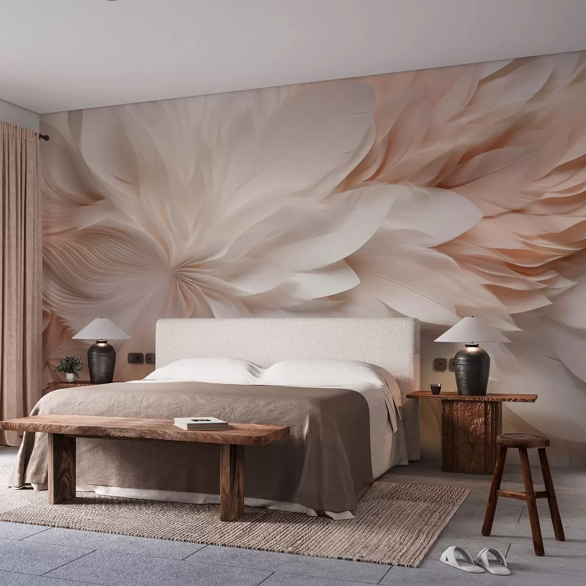 Fotomurales Delicadas plumas abstractas en movimiento en tonos beige y crema Nr. w09509