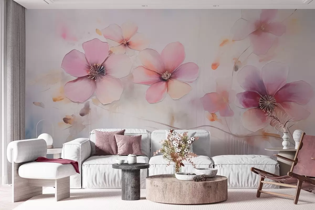 Fotomurales Rama con flores rosas en estilo acuarela Nr. w09522
