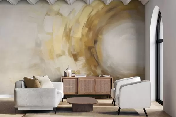 murales de pared Imitación de pintura abstracta con pinceladas circulares texturizadas en amarillo y blanco, creando una sensación de movimiento w09558